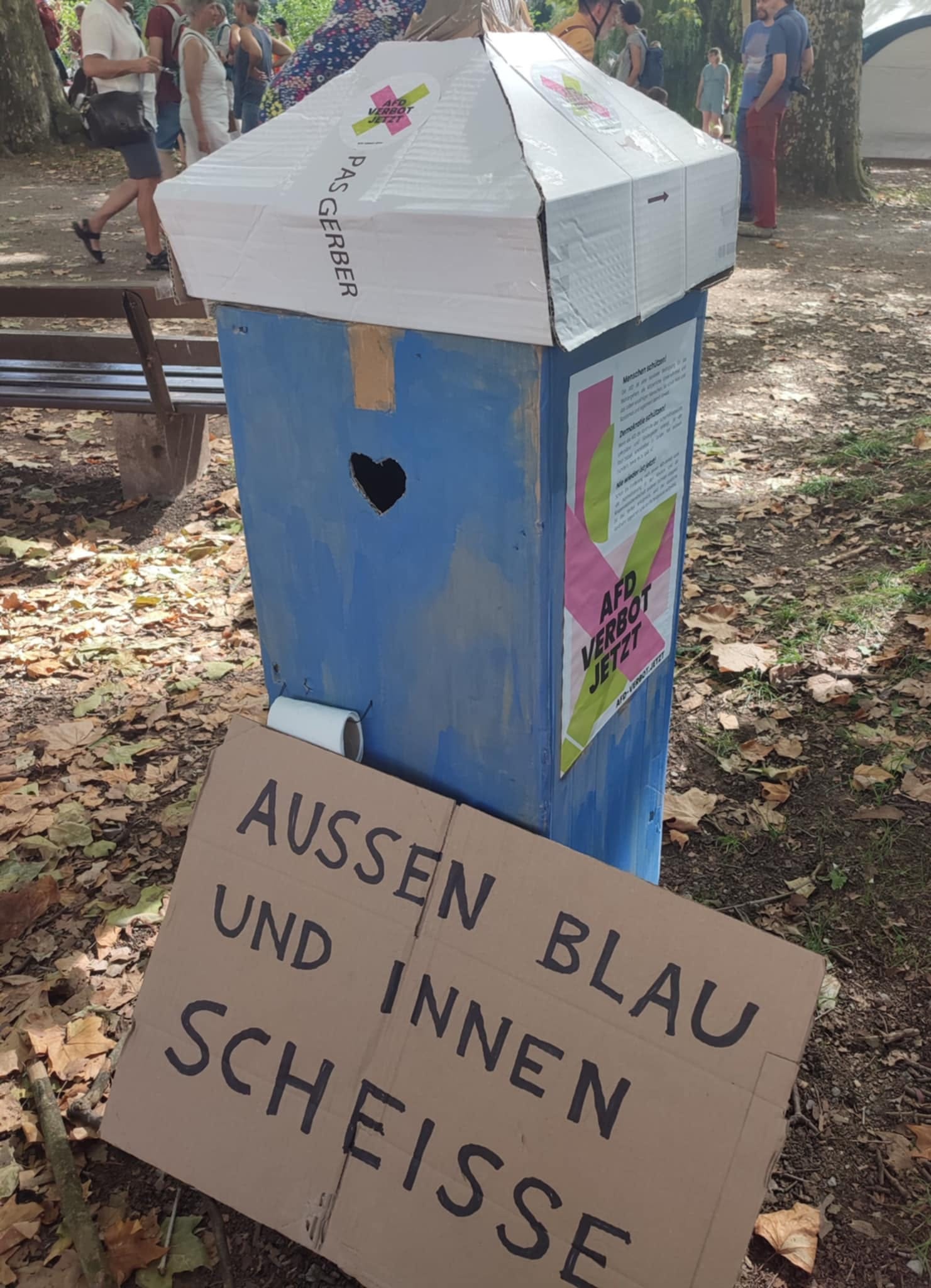 Óvjuk meg az embereket! Az AfD konkrét fenyegetést jelent számtalan ember jólétére, fizikai épségére és életére. Gyűlöletet és rasszizmust szít, ezáltal legitimálja az erőszakot.